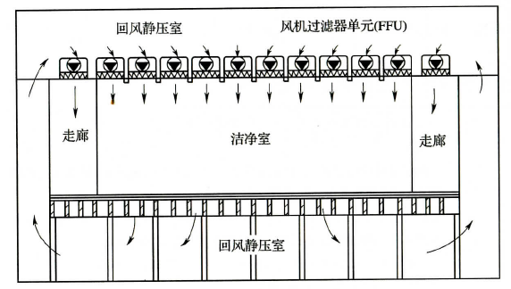 圖2 風(fēng)機過(guò)濾器單元送風(fēng)方式(FFU)示意圖