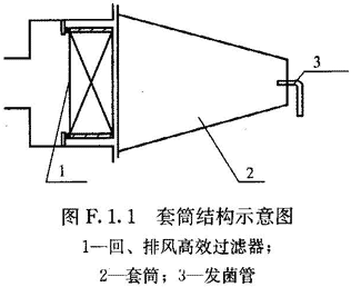 套筒(測定回、排風(fēng)高效過(guò)濾風(fēng)口時(shí)需要使用,罩住整個(gè)入口,使檢漏范圍包括邊框,長(cháng)度應使通過(guò)氣流時(shí)間為0.5s~1s,見(jiàn)圖F.1.1)。