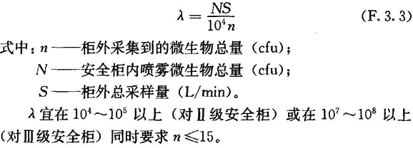 F.3.3 安全柜隔離系數λ按下式評價(jià):