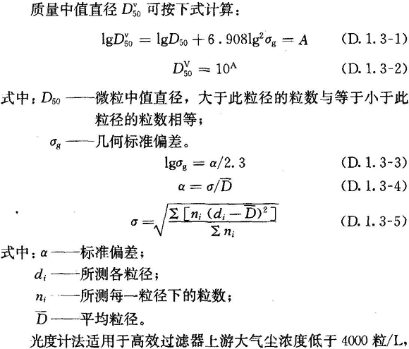D.1.3 光度計法可用于最大穿透率大于等于0.001%的過(guò)濾器檢漏,應采用多分散的檢漏氣溶膠,其質(zhì)量中值直徑為0.5μm~0.7μm,幾何標準偏差約為1.7。