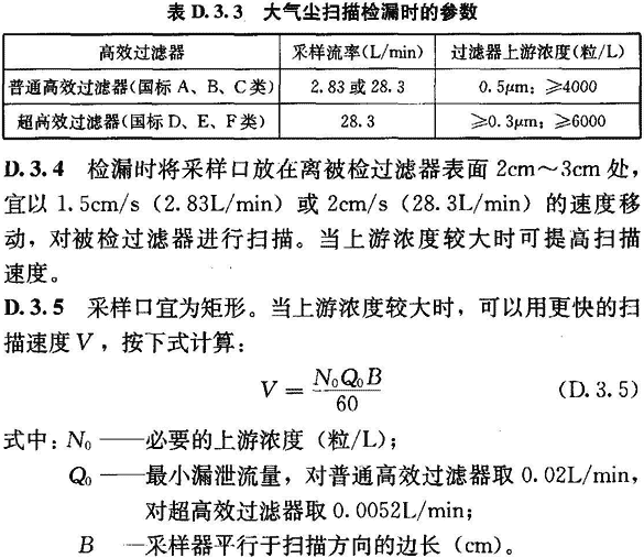 D.3.7 掃描檢漏時(shí)應拆去高效過(guò)濾器外的孔板或裝飾層,掃描面積應稍有搭接。